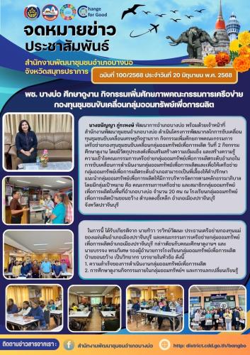 ?พช. บางบ่อ ศึกษาดูงาน กิจกรรมเพิ่มศักยภาพคณะกรรมการเครือข่ายกองทุนชุมชนขับเคลื่อนกลุ่มออมทรัพย์เพื่อการผลิต