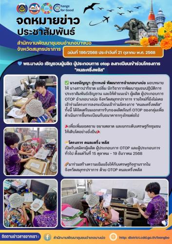 พช.บางบ่อ เชิญชวนผู้ผลิต ผู้ประกอบการ otop ลงทะเบียนเข้าร่วมโครงการ "คนละครึ่งพลัส"