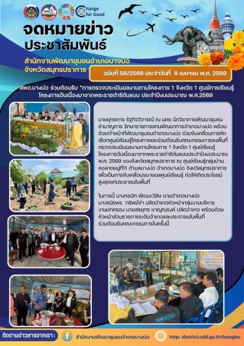 พช.บางบ่อ ร่วมต้อนรับการตรวจประเมินผลงานตามโครงการ 1 จังหวัด 1 ศูนย์การเรียนรู้ โครงการอันเนื่องมาจากพระราชดำริต้นแบบ ประจำปีงบประมาณ พ.ศ. 2569